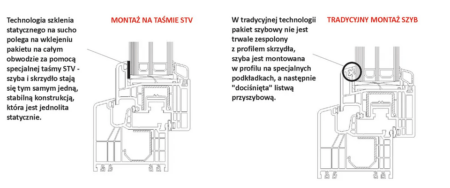 Szklenie statyczne na sucho pozwala nie zaprzątać sobie głowy takimi problemami. Najprościej rzecz ujmując, esencją tej technologii jest wykorzystanie specjalnej dwustronnej taśmy klejącej, za pomocą której zespala się szybę z profilem. Technika STV powstała z myślą o przemyśle motoryzacyjnym, gdzie wklejanie szyb zdecydowanie podnosiło ogólną sztywność całej konstrukcji auta, to zaś umożliwiało powiększanie rozmiarów poszczególnych okien w samochodach, bowiem w tym przypadku efektowny design mógł wreszcie iść w parze z trwałością i bezpieczeństwem.