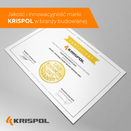 Złoty Laur Klienta jest przyznawany najbardziej innowacyjnym markom, dla których najważniejsza jest jakość sprzedawanych produktów. Coraz bardziej świadomi konsumenci oczekują bezproblemowych doświadczeń zakupowych. Poszukują miejsc, w których przy wsparciu specjalistów dokonają kompleksowych zakupów, oszczędzając przy tym czas i pieniądze. Mając to na uwadze, po raz kolejny wysoko ocenili markę KRISPOL i Sieć Salonów KRISHOME, przyznając im godło Złoty Laur Konsumenta 2023 w kategorii „Jakość i innowacja branży budowlanej”.